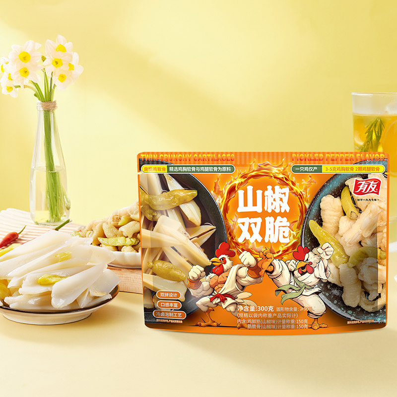 有友山椒双脆鸡脚筋三角骨小礼包300g无骨鸡爪筋泡椒鸡肉脆骨零食