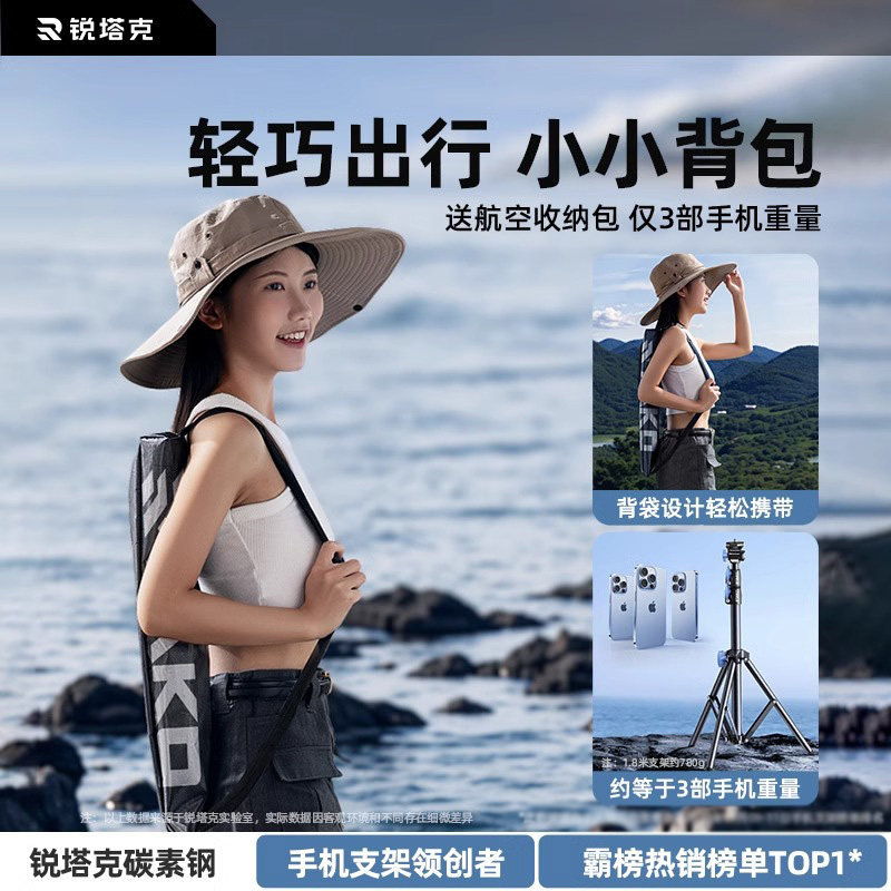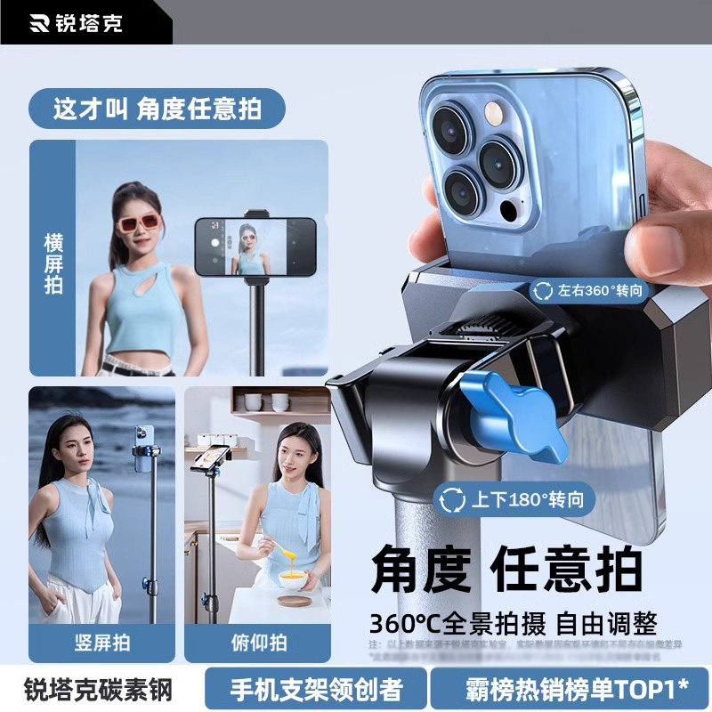 锐塔克丢丢杆】2025新款手机自拍杆三脚架一体旅游便携式手持落地通用360度旋转拍照神器vlog演唱会拍摄支架