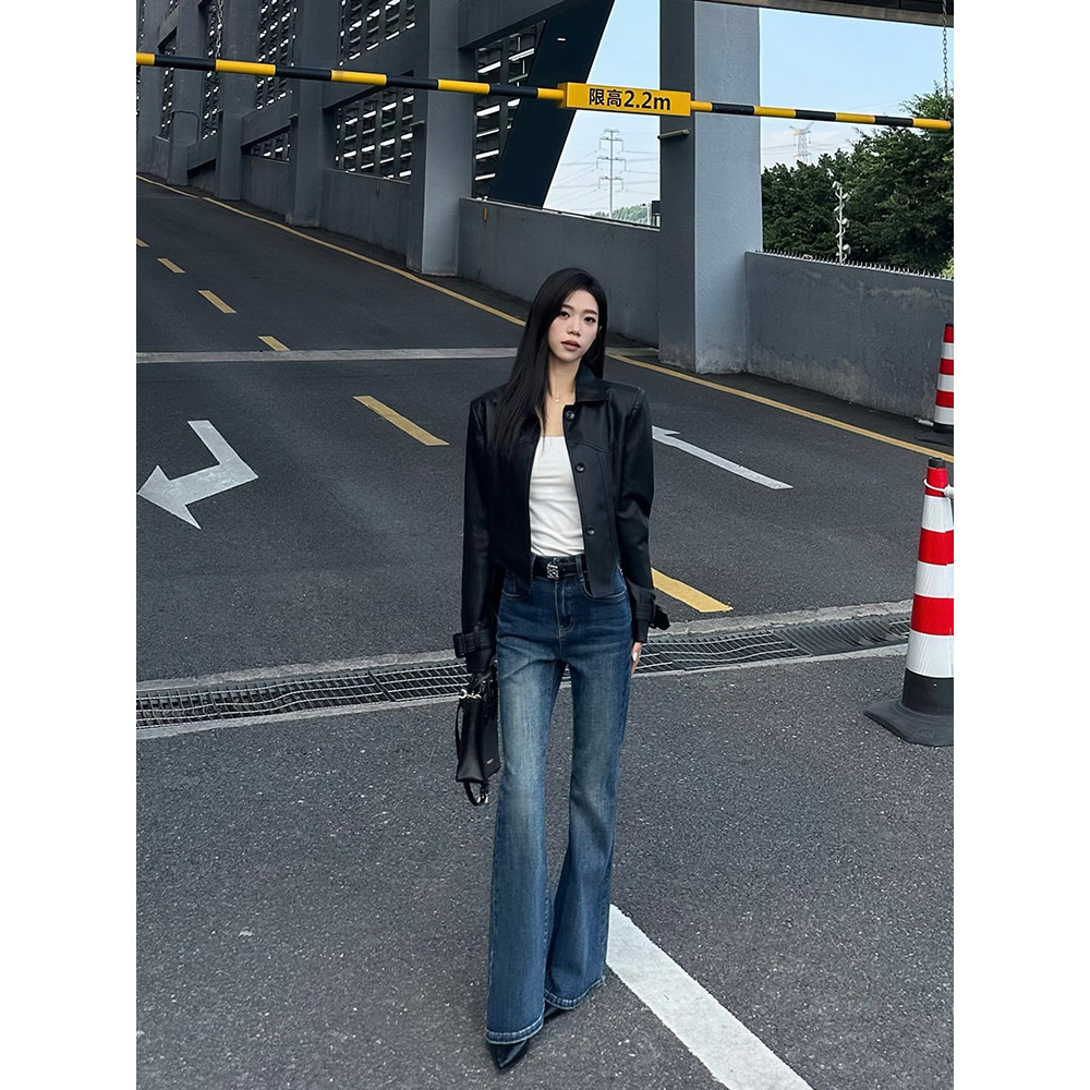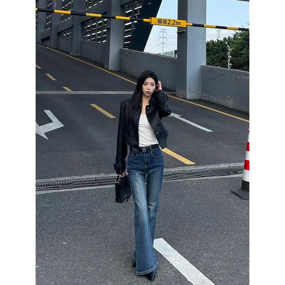 一三良品小个子 大长腿 复古修身显瘦牛仔裤长裤拖地喇叭裤子女秋