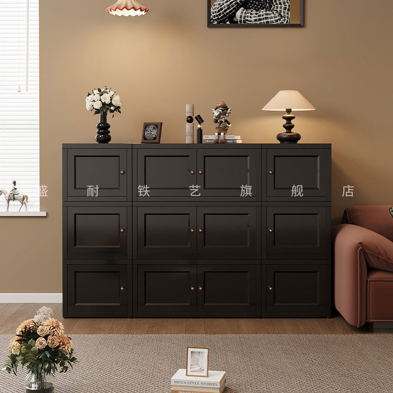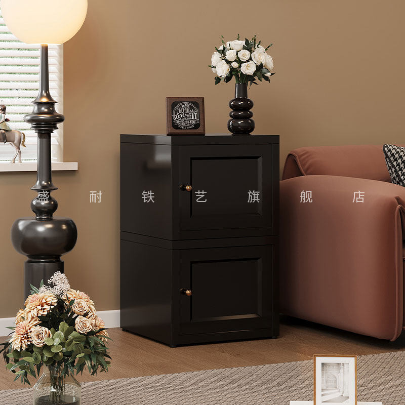 中古风书柜带门储物柜客厅沙发旁立柜边柜电视柜置物柜书架零食柜