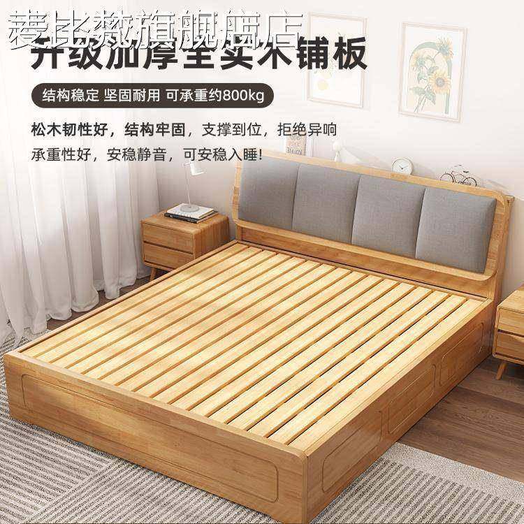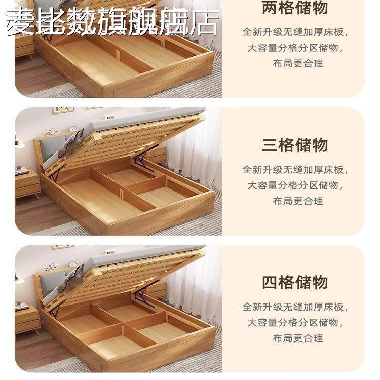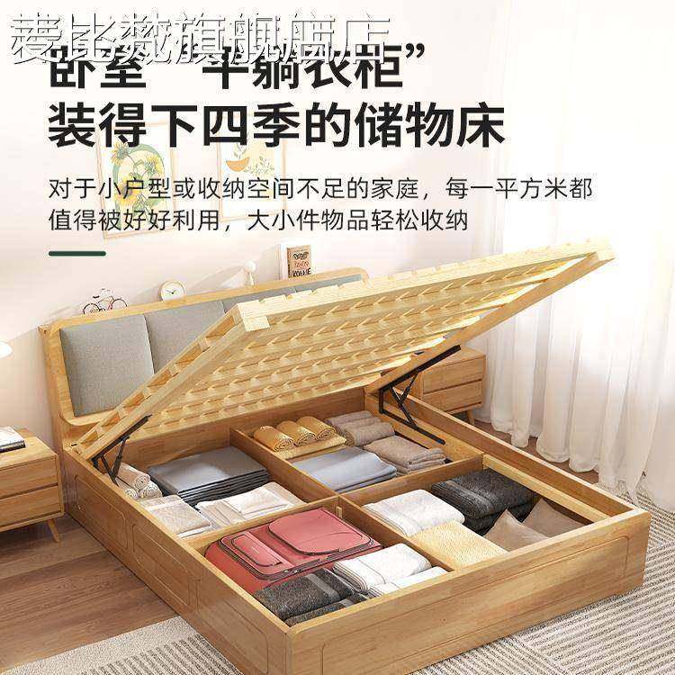 麦比梵北欧实木高箱床双人床家用1.8米单人床1.2m收纳储物床1.5米小户型摆件垫垫床笠拉车