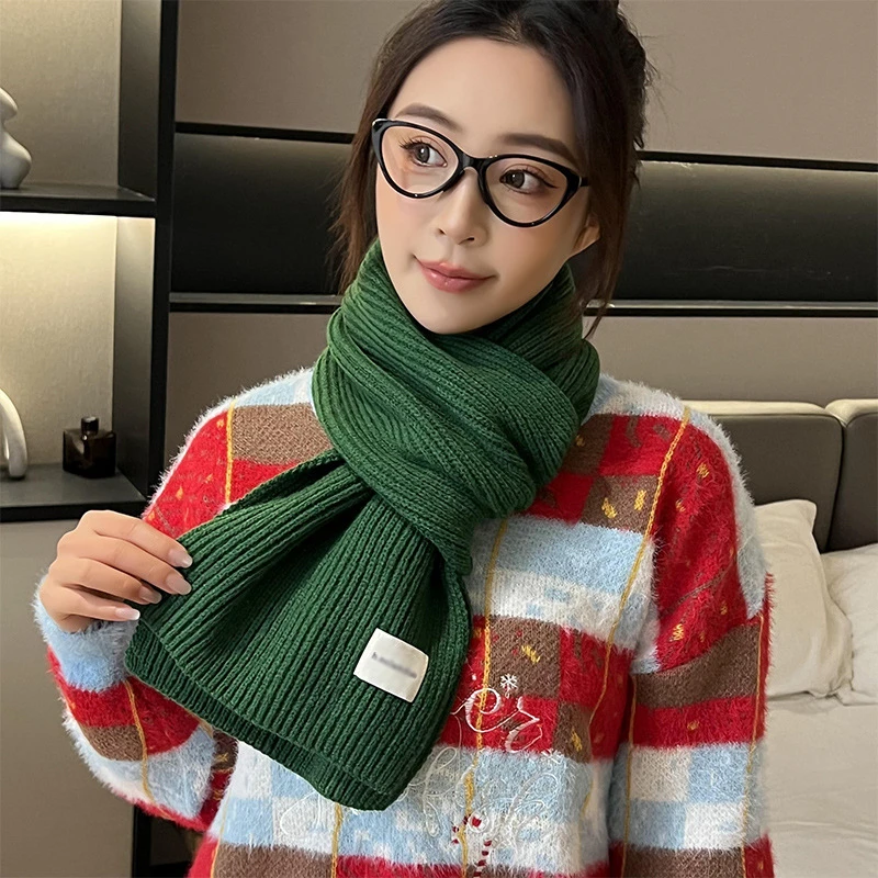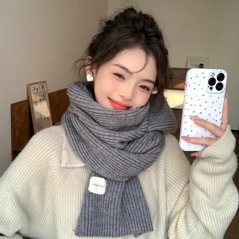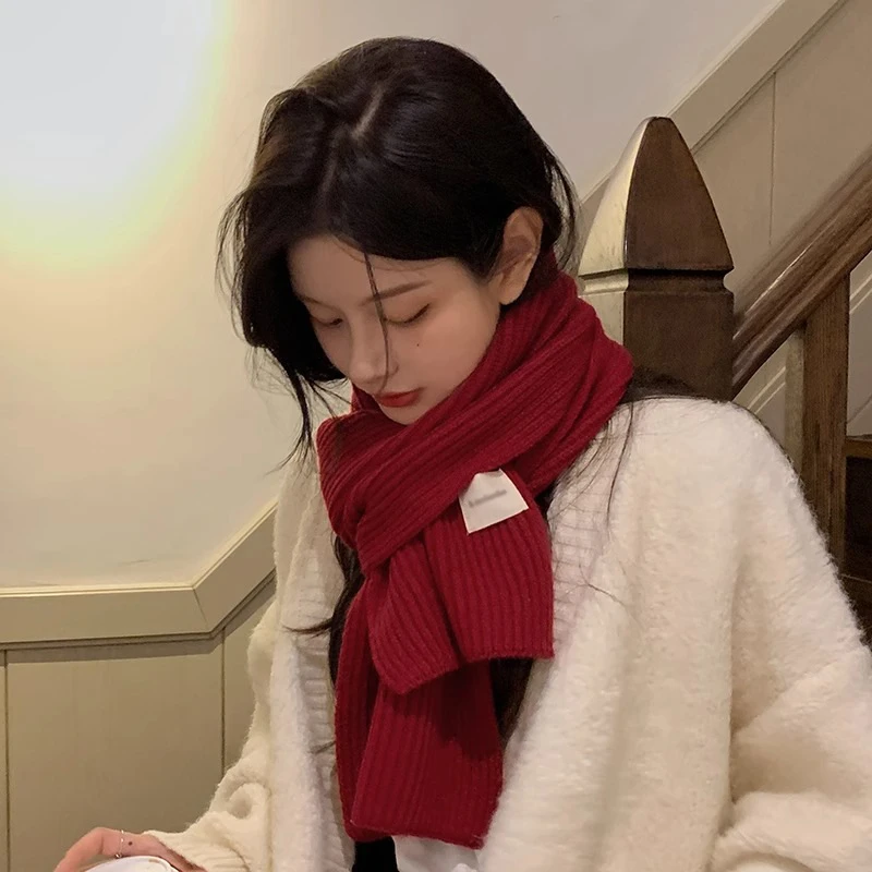 针织围巾围脖新年红色氛围感ins韩版时尚百搭保暖防寒纯色秋冬季