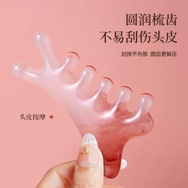 四合一多功能按摩梳头皮檀木经络梳树脂头部脸部提拉刮痧神器便携