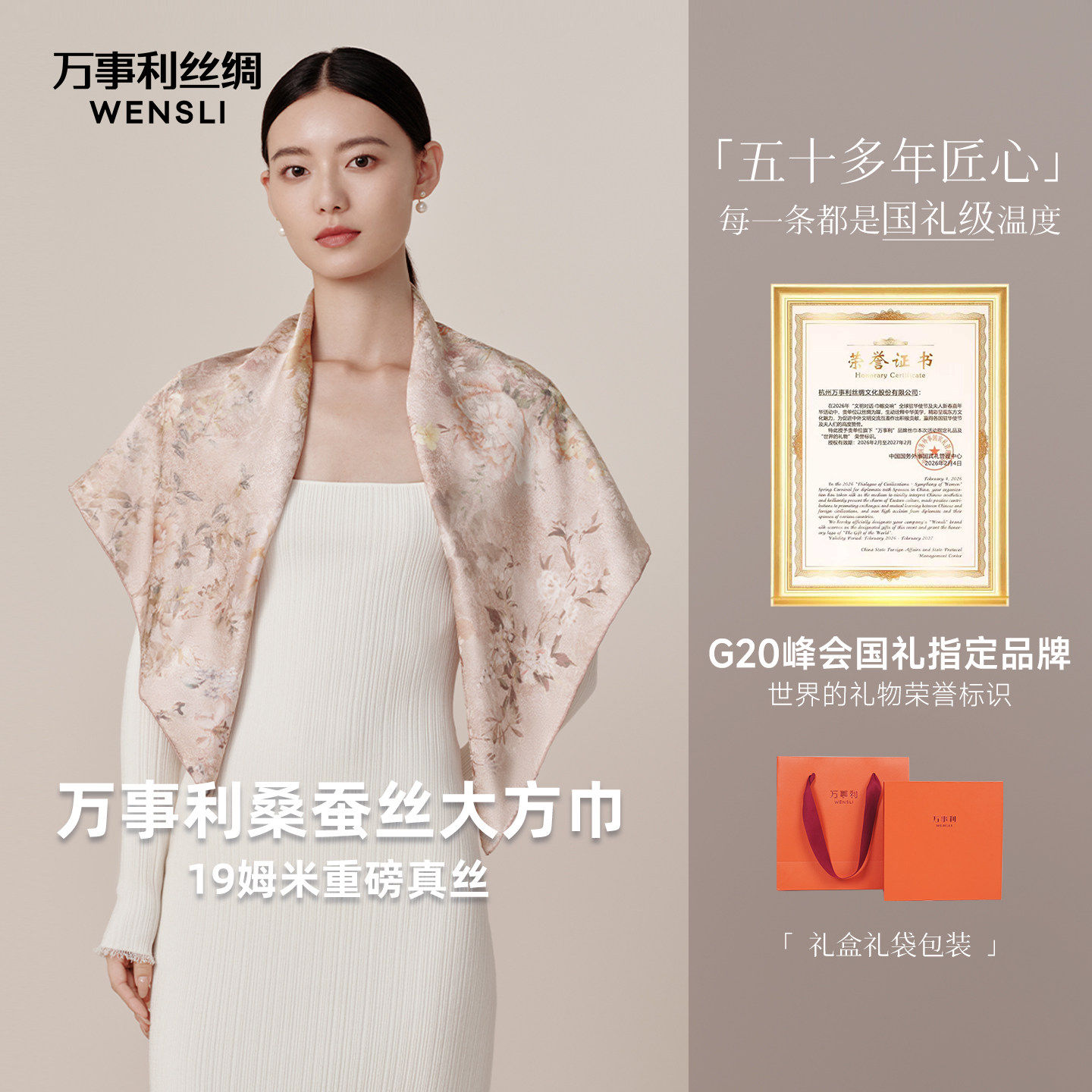万事利新款100%桑蚕丝真丝丝巾女手工19姆米提花大方巾披肩梦花笺