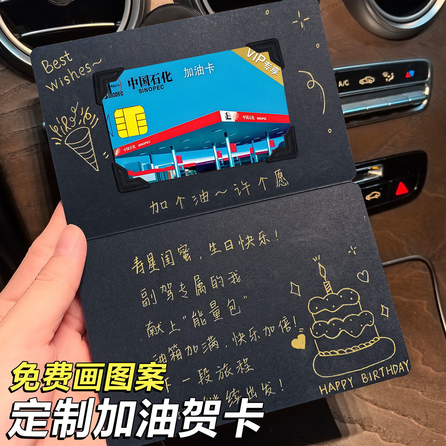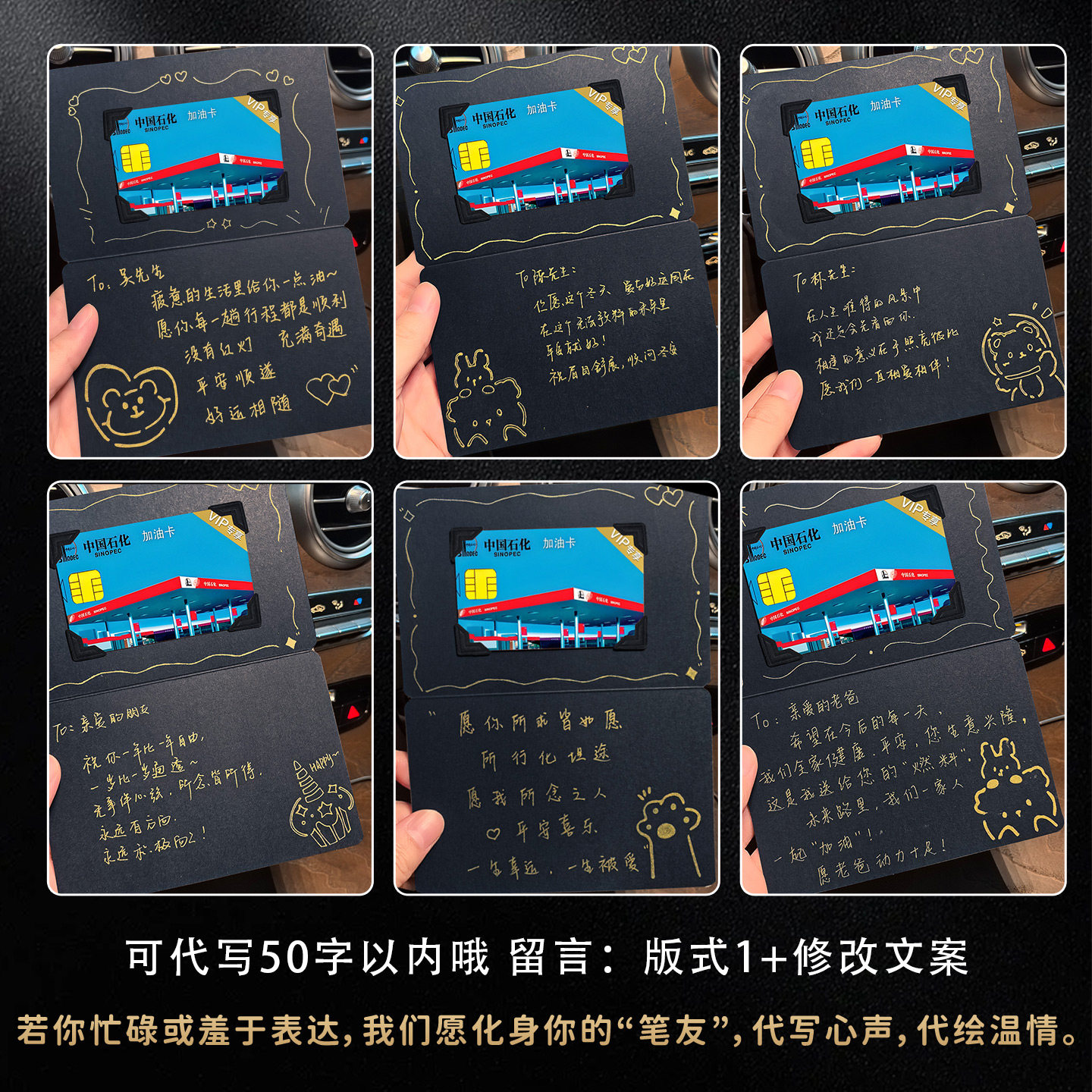 AILICUL代写手写加油卡贺卡定制留言内容简约高级感包装七夕情人节送男友生日礼物感恩父亲节祝福送爸爸