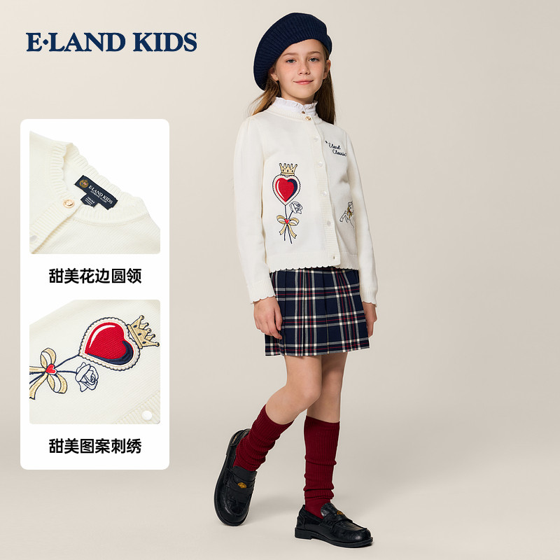 【新年款】eland kids衣恋童装女童针织开衫26年春季新品含绵羊毛