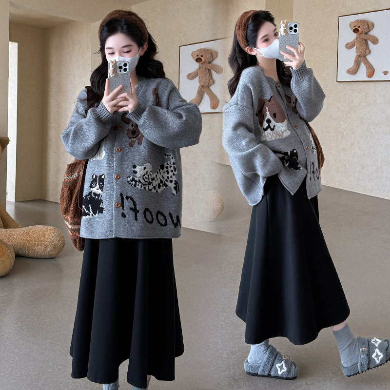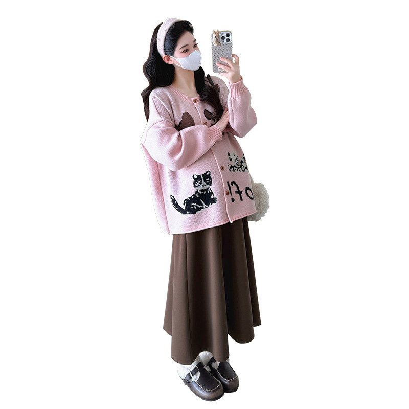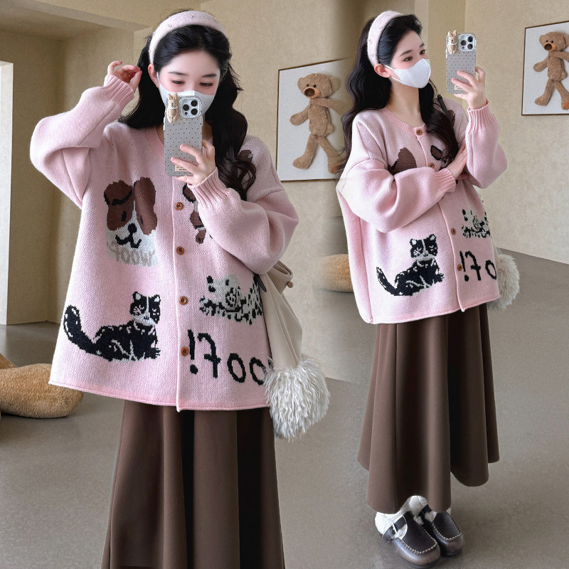 婧麒孕妇装2025新款宽松秋冬款针织衫卫衣卫裤两件套冬装孕妇套装