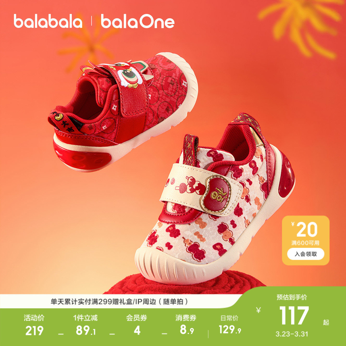 巴拉巴拉童鞋宝宝学步鞋新年红色鞋子春秋2026新款透气软底婴儿鞋
