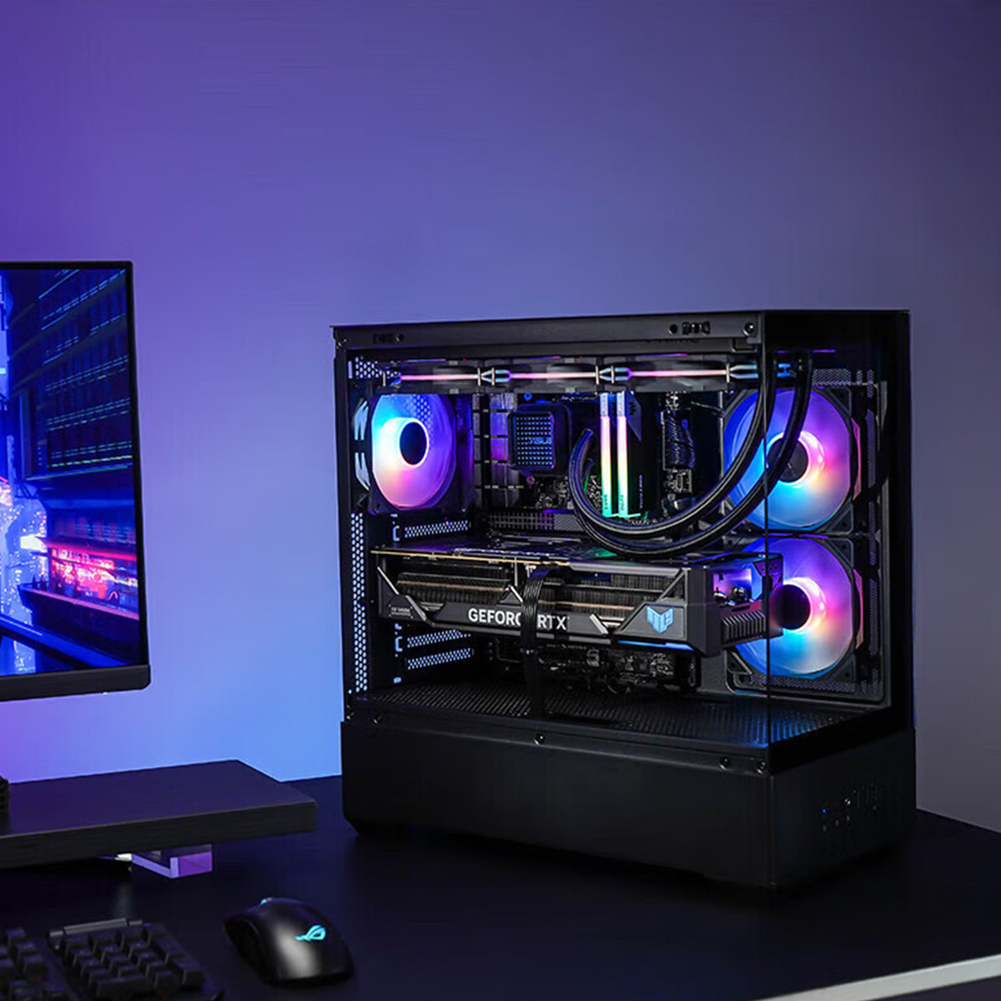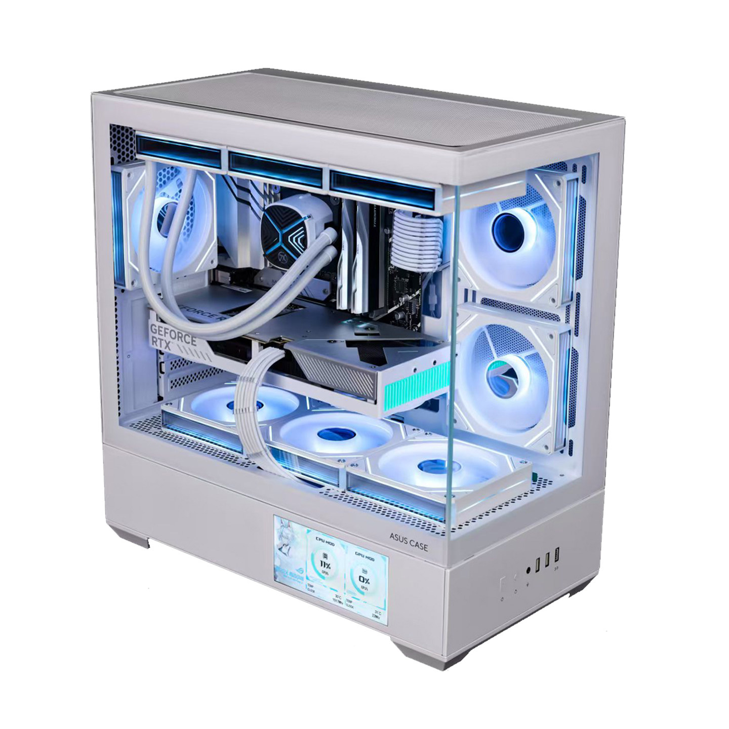 华硕彗星A01海景房机箱 MATX无立柱全景6英寸LCD屏360水冷机箱