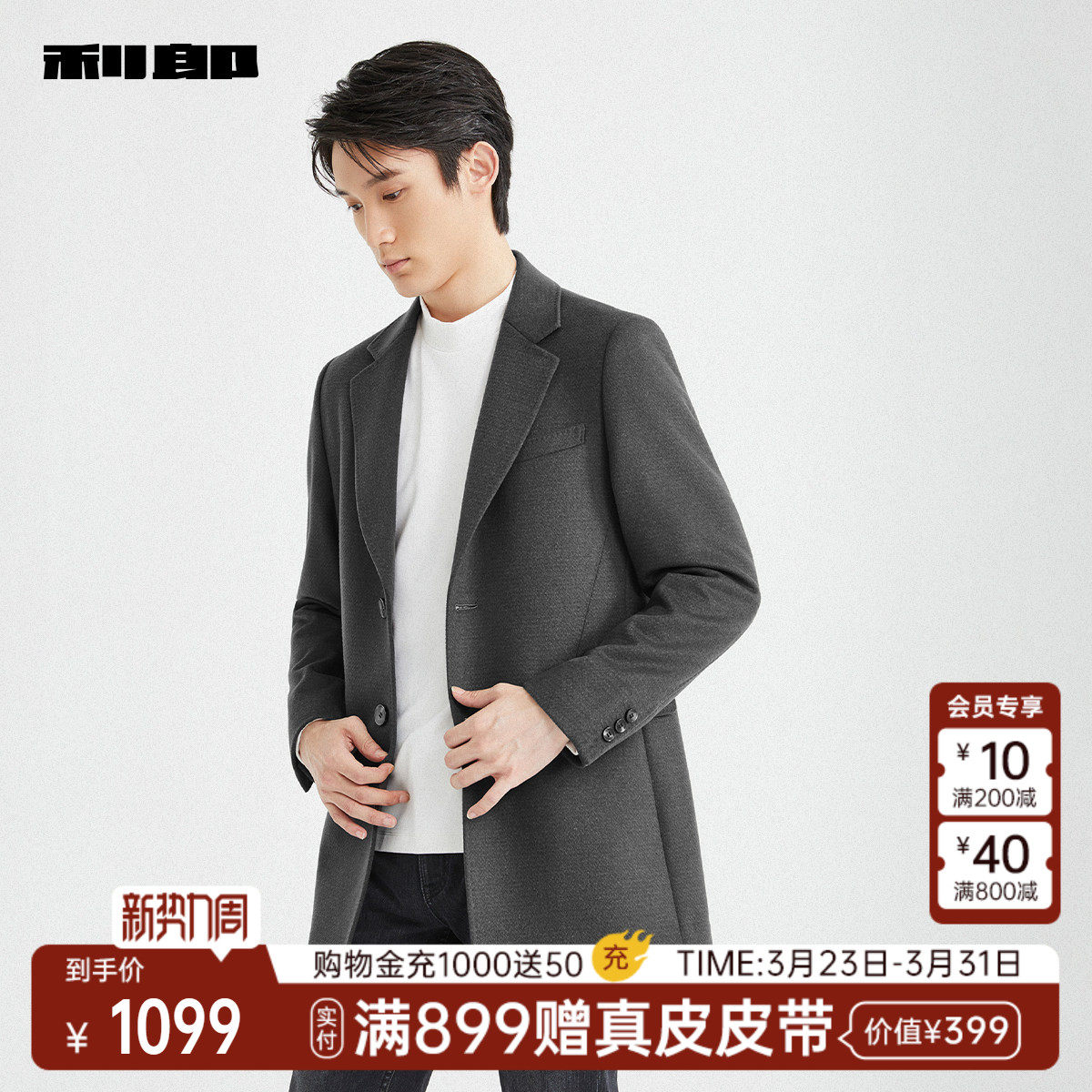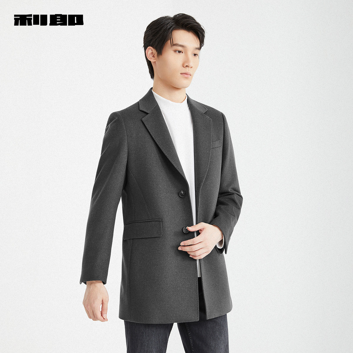 【绵羊毛】利郎官方 中长款毛呢大衣男士西装领冬季新款外套