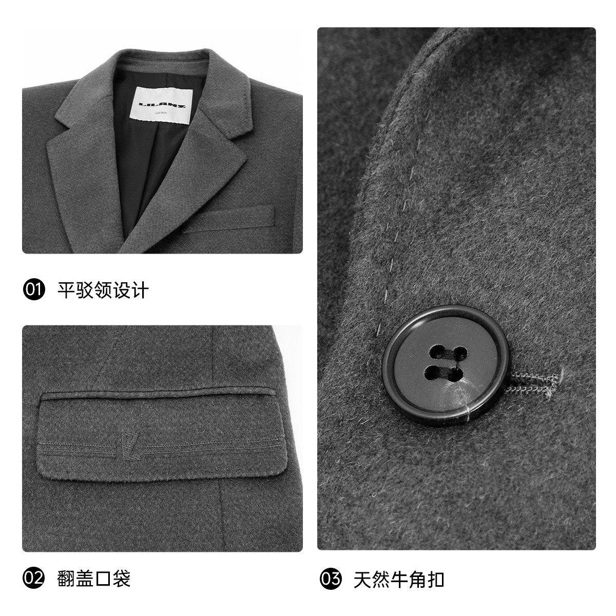 甄选绵羊毛 中长款 西装领 修身版型