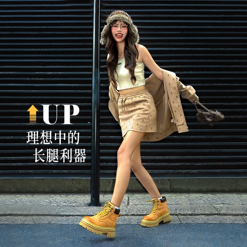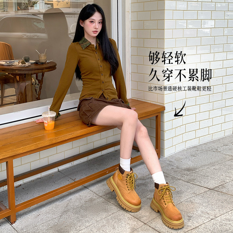 骆驼马丁靴女鞋秋冬大黄靴真皮短靴子女厚底工装靴登山鞋