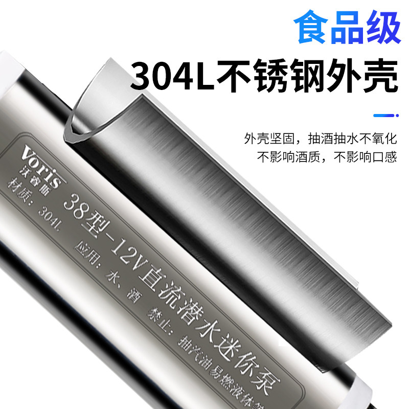 38型食品级家用抽酒泵流量可调抽酒神器12v220v抽水泵潜水泵304L