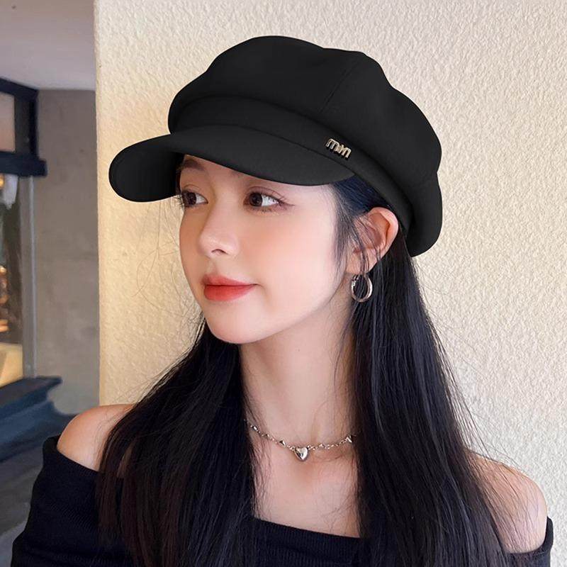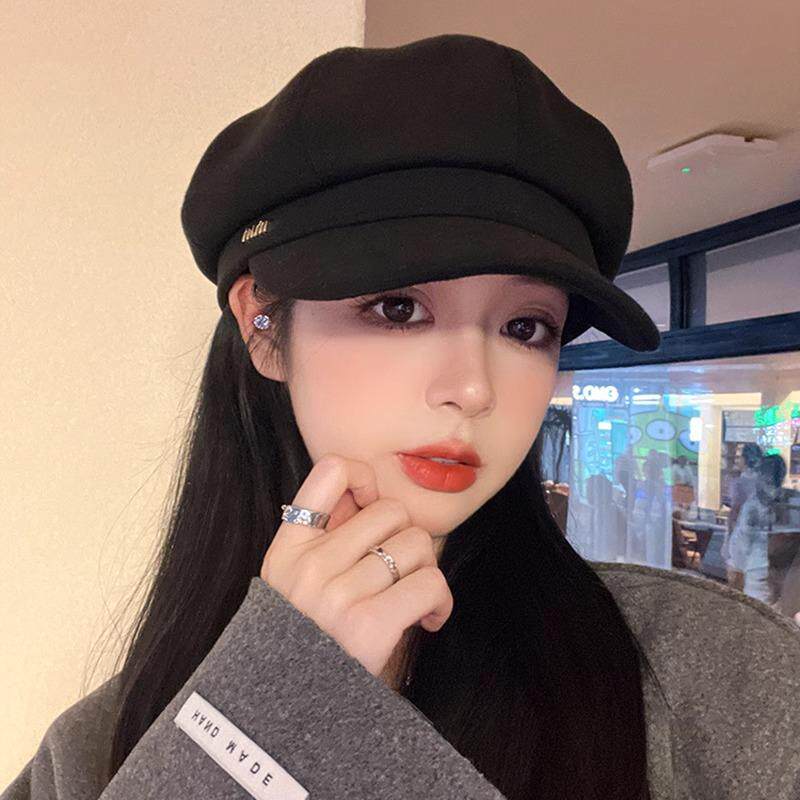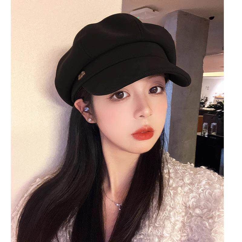 Classy key新加坡设计师联名款新款贝雷帽八角帽法式复古黑色帽子