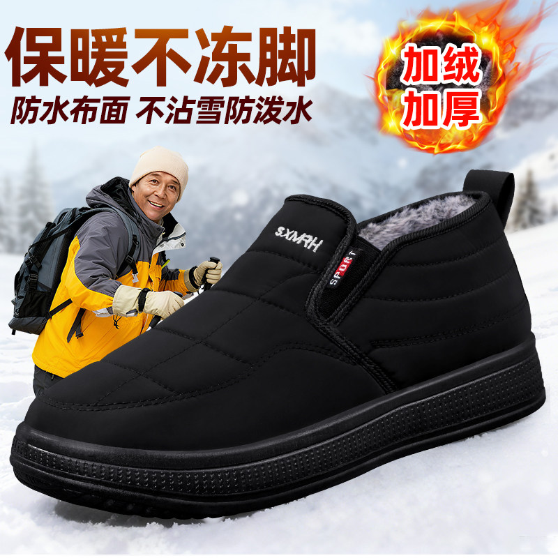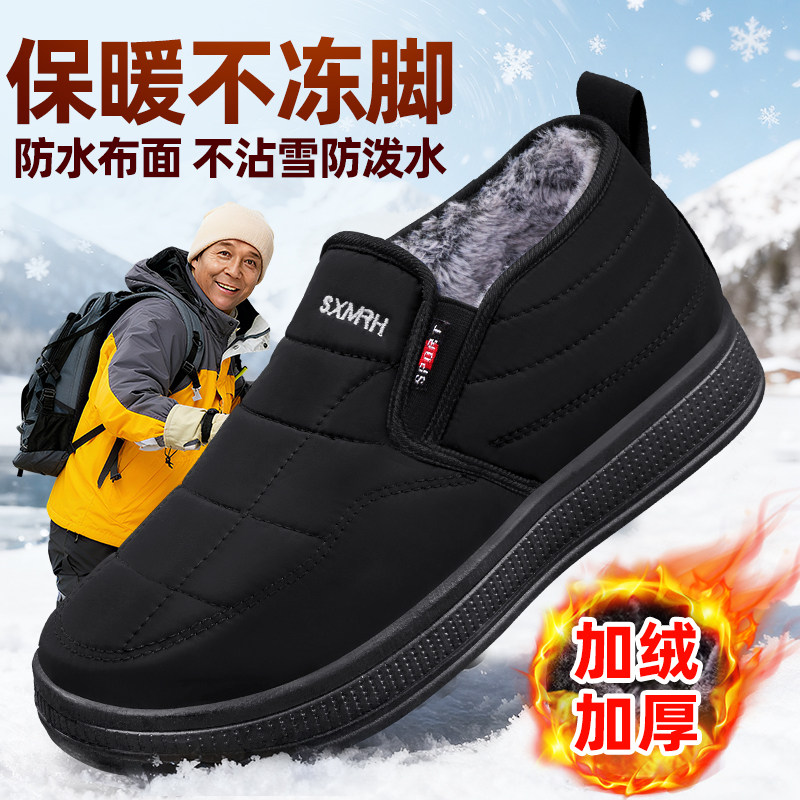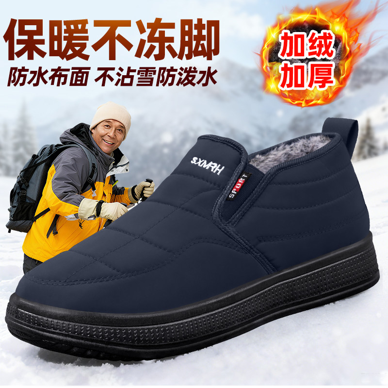 老北京布鞋男士冬季加绒防滑老人二棉鞋休闲保暖加厚中老年爸爸鞋