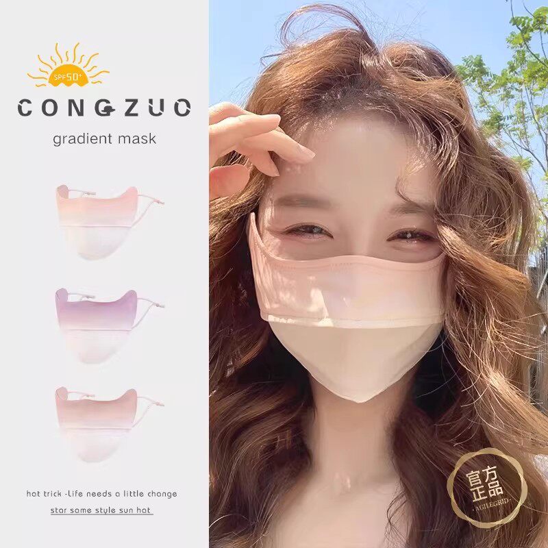 高级感防晒口罩女防紫外线遮全脸夏季薄款渐变色冰丝脸罩腮红面罩