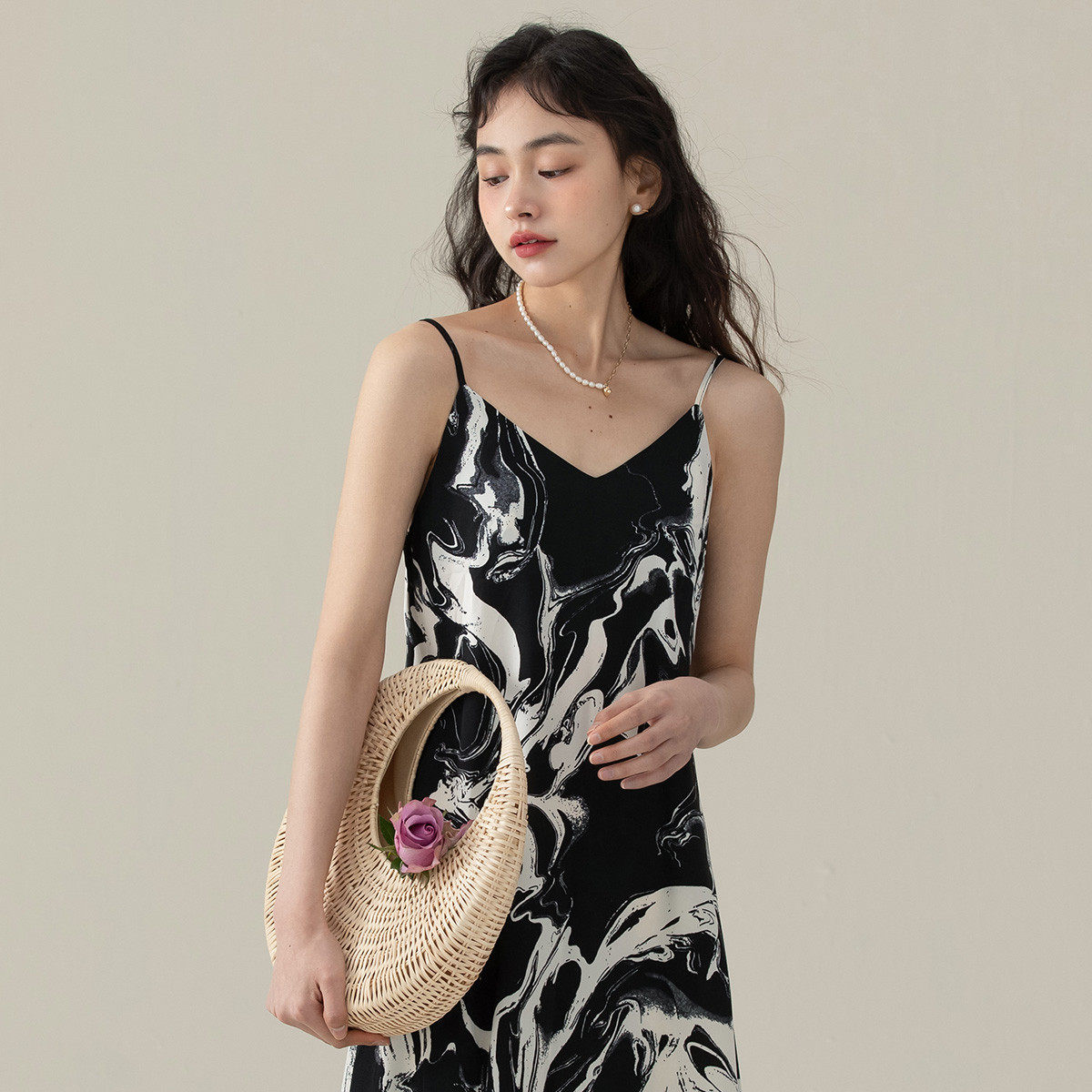 【2025秋季新款】v领吊带连衣裙女气质高级感碎花裙a字打底裙
