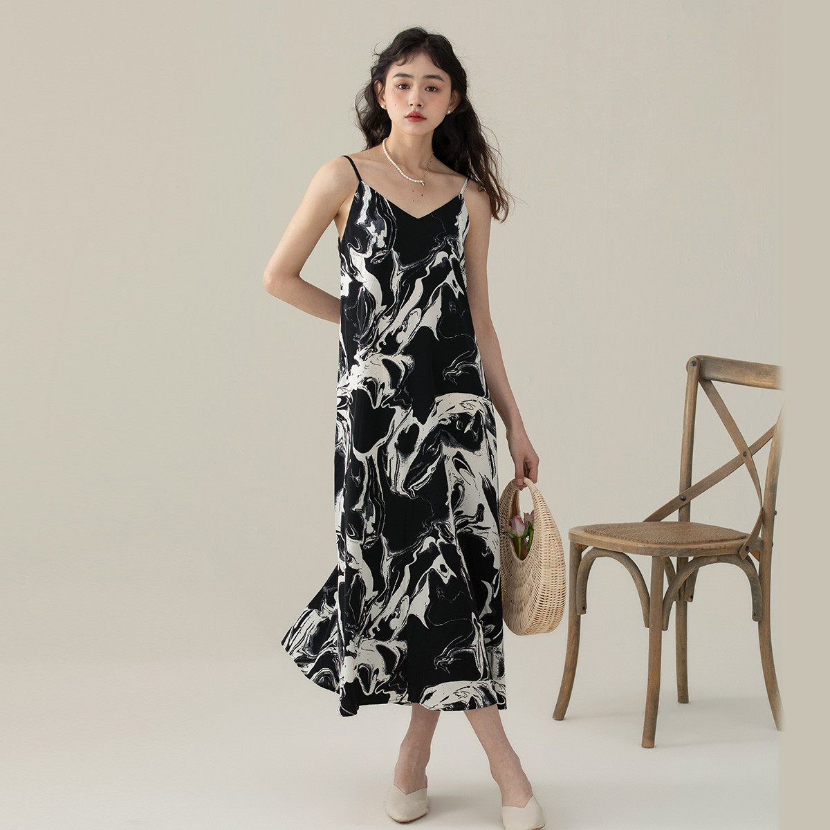 【裙子清仓99元起】半练带胸垫连衣裙秋季打底背心裙黑白吊带裙子