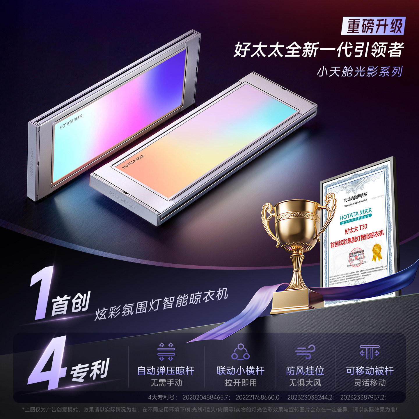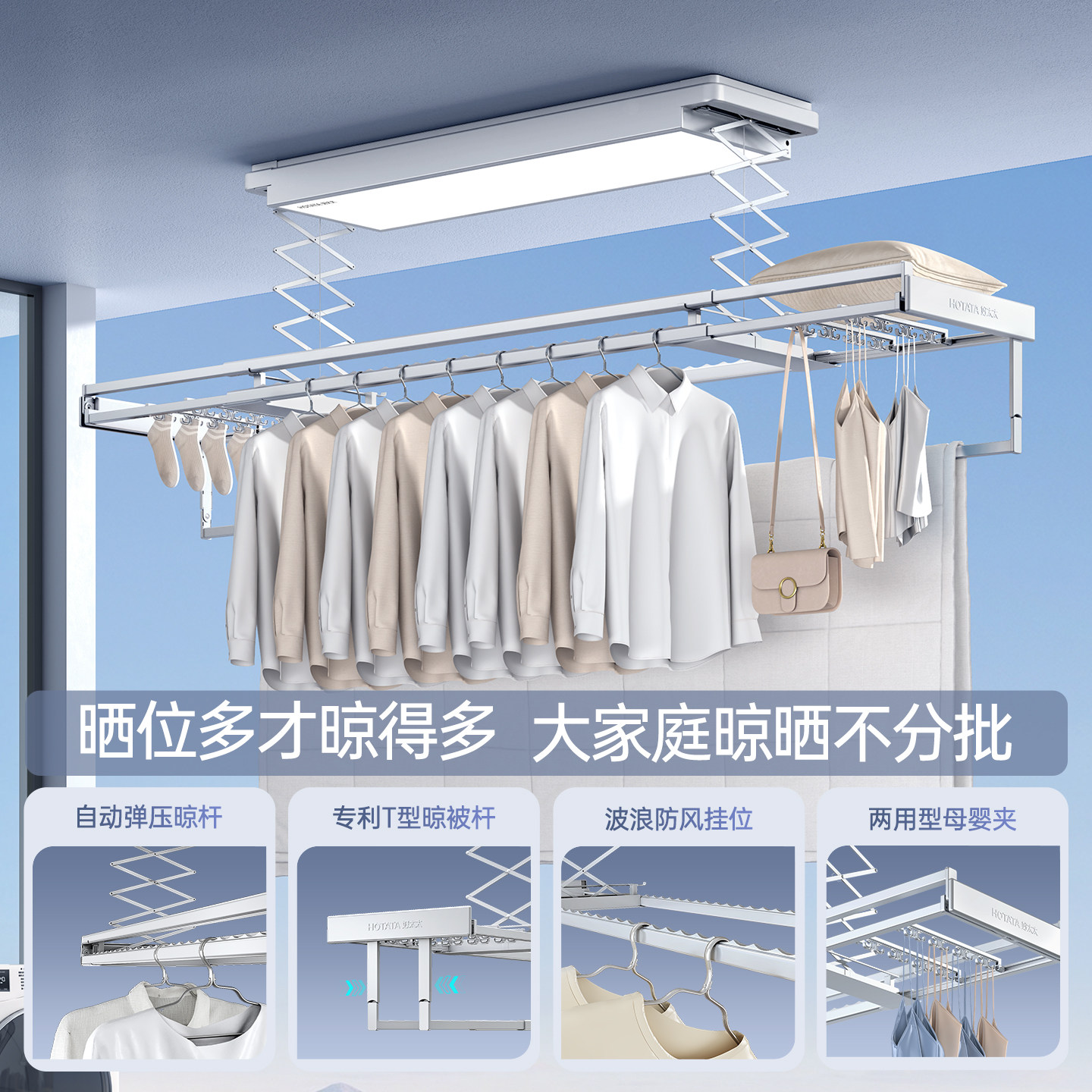 【重磅新品】好太太光影小天舱电动晾衣机阳台家用升降智能晒衣架