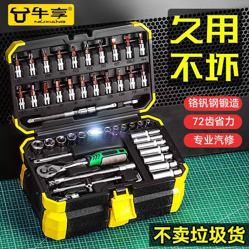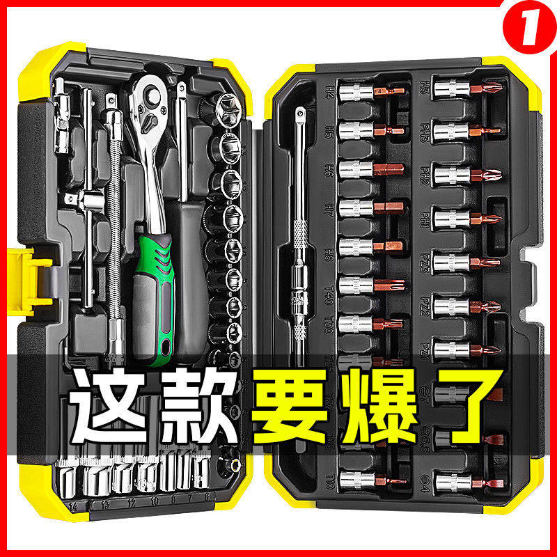 新款53件套汽修工具大全修车工具套装中小飞套筒扳手快速棘轮扳手