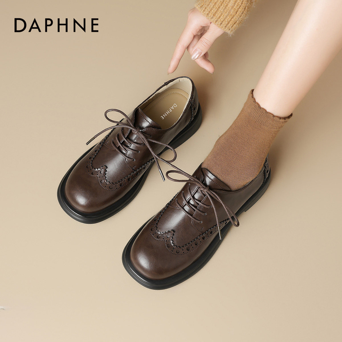 达芙妮英伦风小皮鞋女2026新款秋春百搭乐福鞋厚底系带布洛克单鞋