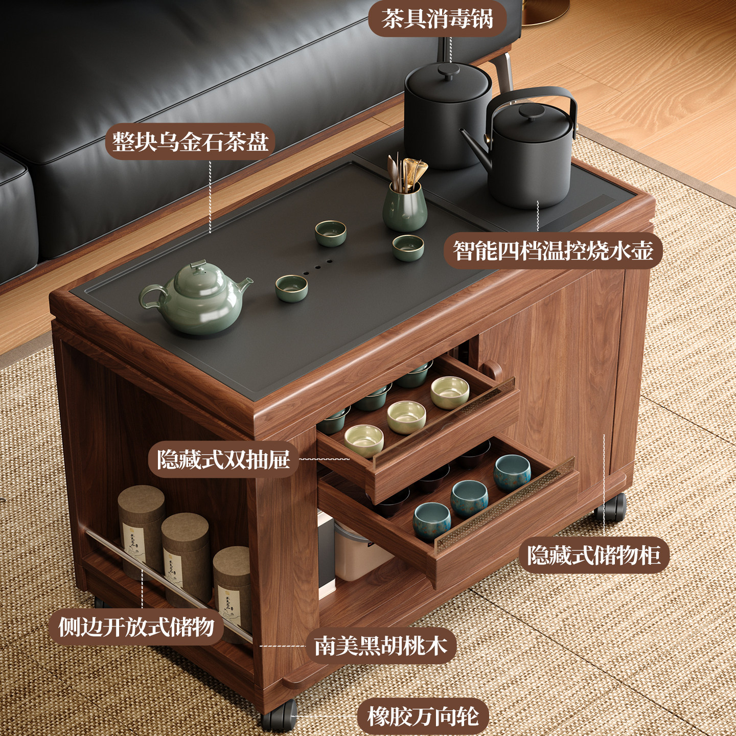 木小咖 木作小户型实木可移动茶桌家用客厅沙发边几茶水柜茶台