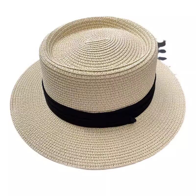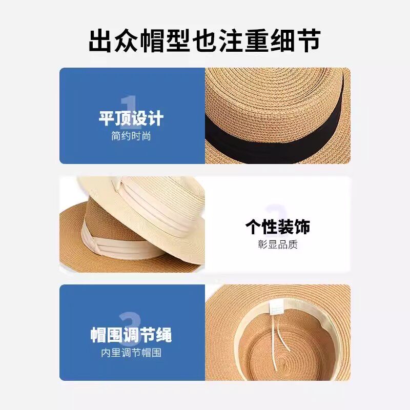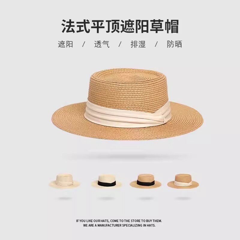 2026新款夏季遮阳帽法式平顶草帽女海边沙滩防晒帽子防紫外线户外