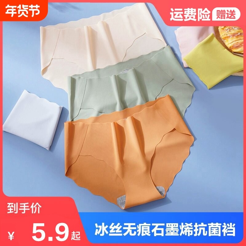 无痕内裤女士抗菌纯棉裆短裤少女生夏季薄款透气冰丝中腰三角裤头