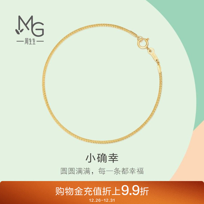 周六福黄18K金红绳手链多彩金女叠戴如意手绳转运圣诞礼物