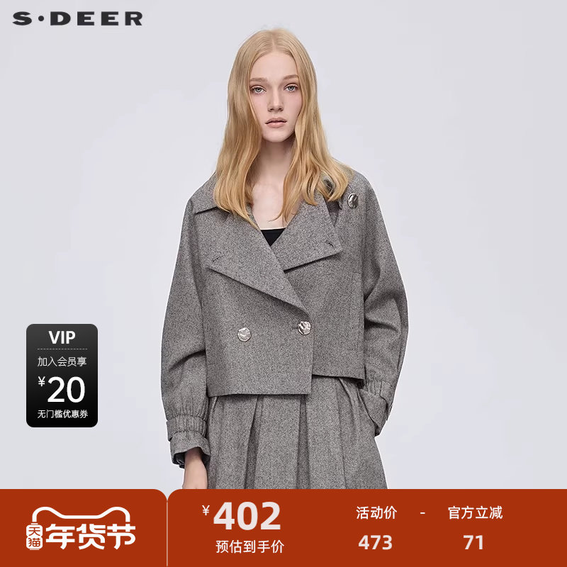 sdeer圣迪奥女装25年新品OL风翻领不规则毛呢短款外套S253Z2221