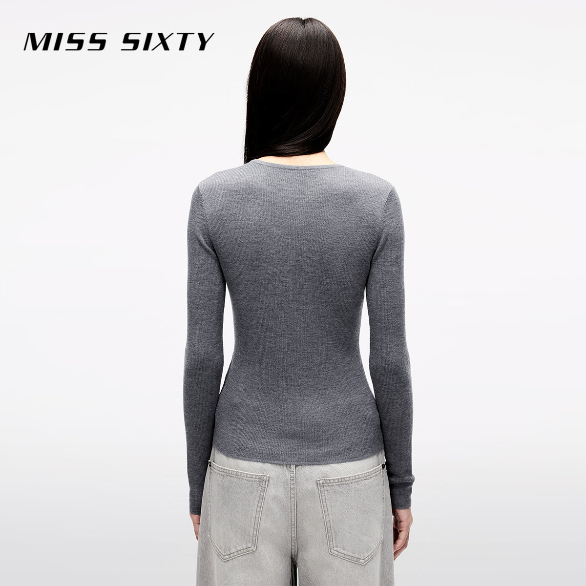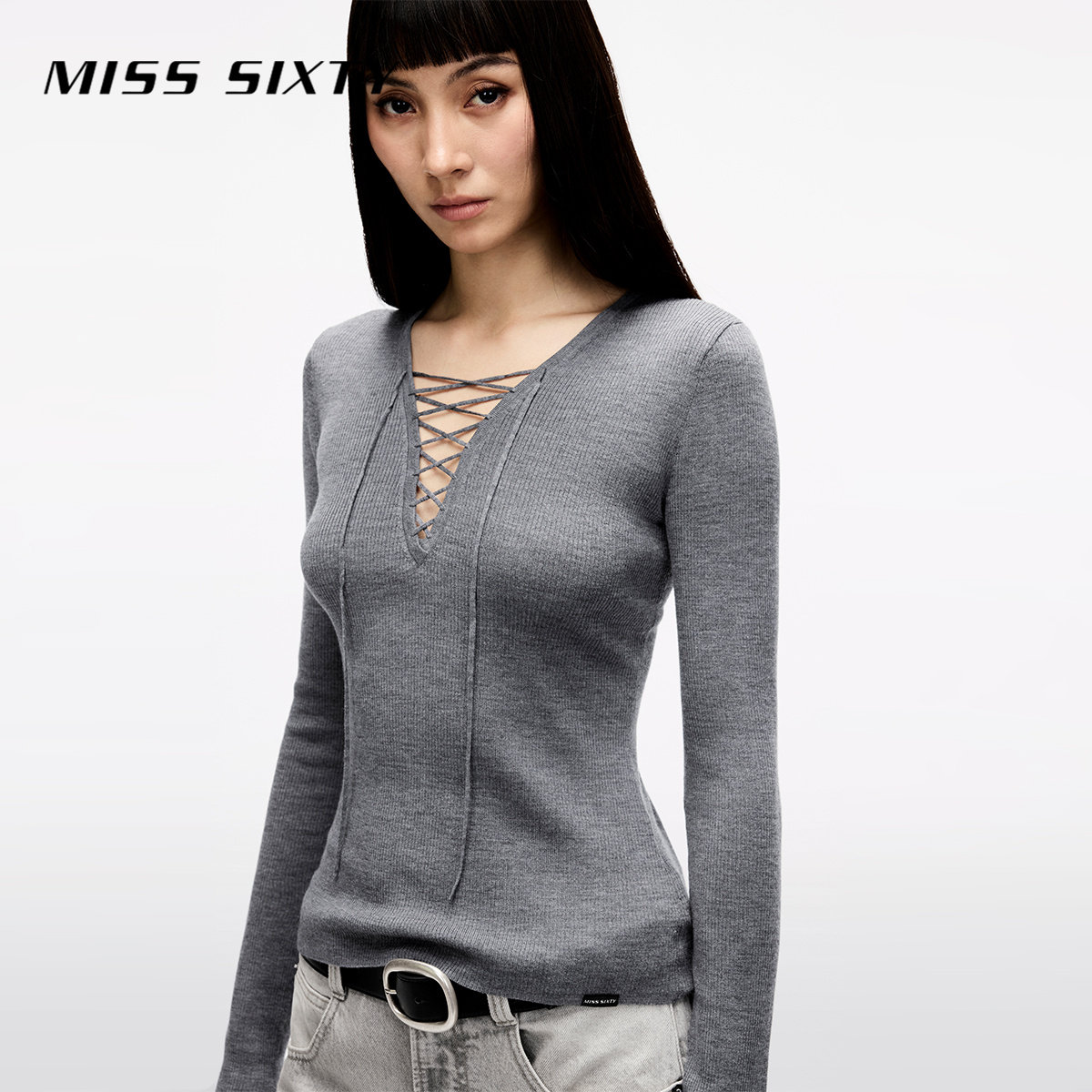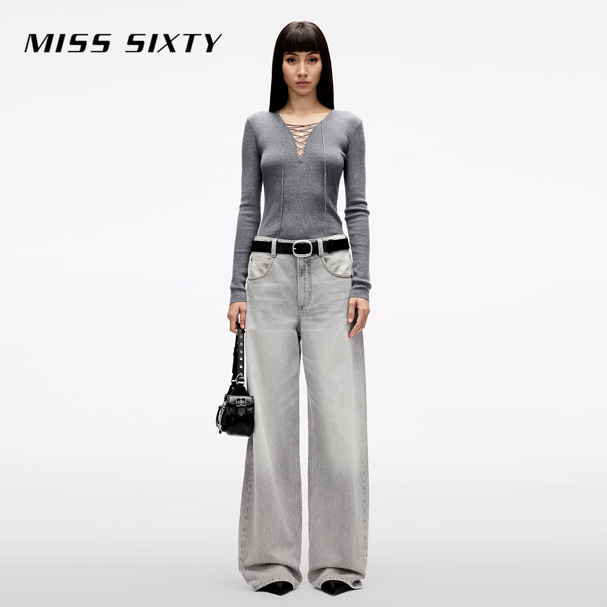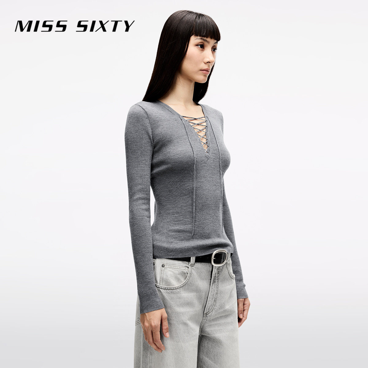 [大领口]Miss Sixty25春秋针织衫系带羊毛桑蚕丝混纺设计休闲毛衣