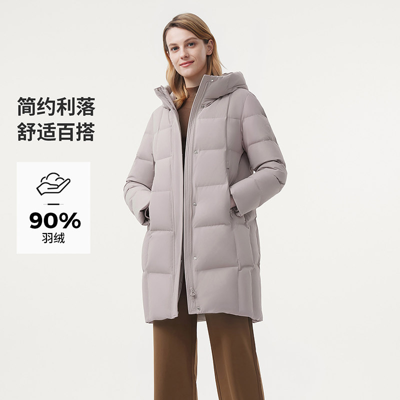 坦博尔冬季羽绒服女款90鸭绒中老年妈妈款中长款连帽加厚保暖外套