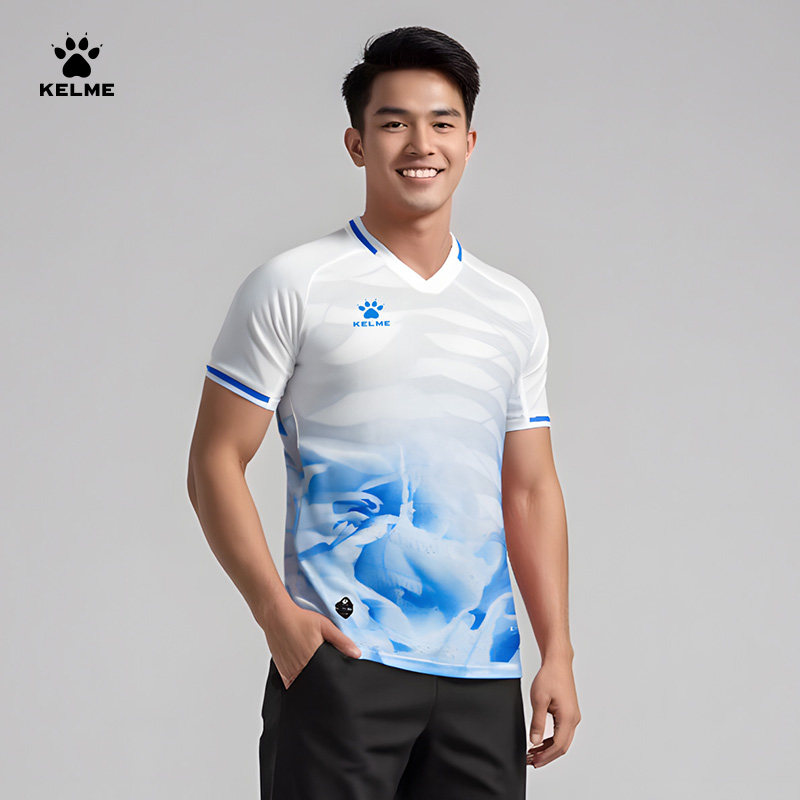 KELME卡尔美短袖训练服男夏季新款V领足球上衣透气跑步运动T恤