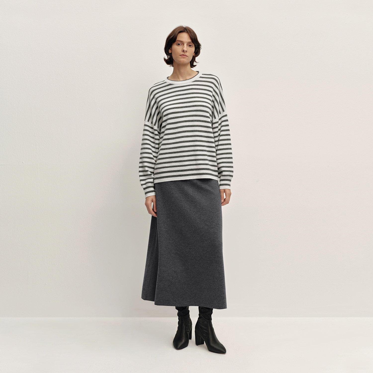 MJ STYLE灰色百褶西装裙女秋冬半身裙高腰休闲大摆a字过膝中长裙