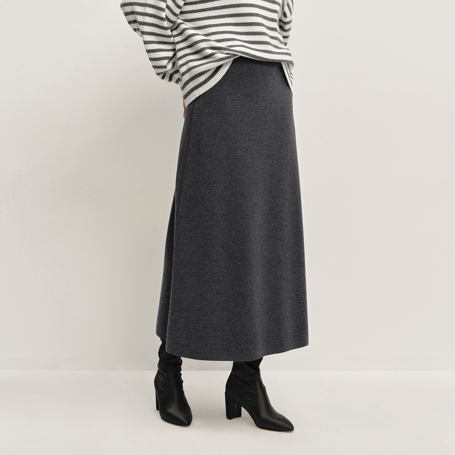 秋冬羊绒半身裙女秋冬新款中长高腰显瘦百褶大摆裙A字针织羊毛裙