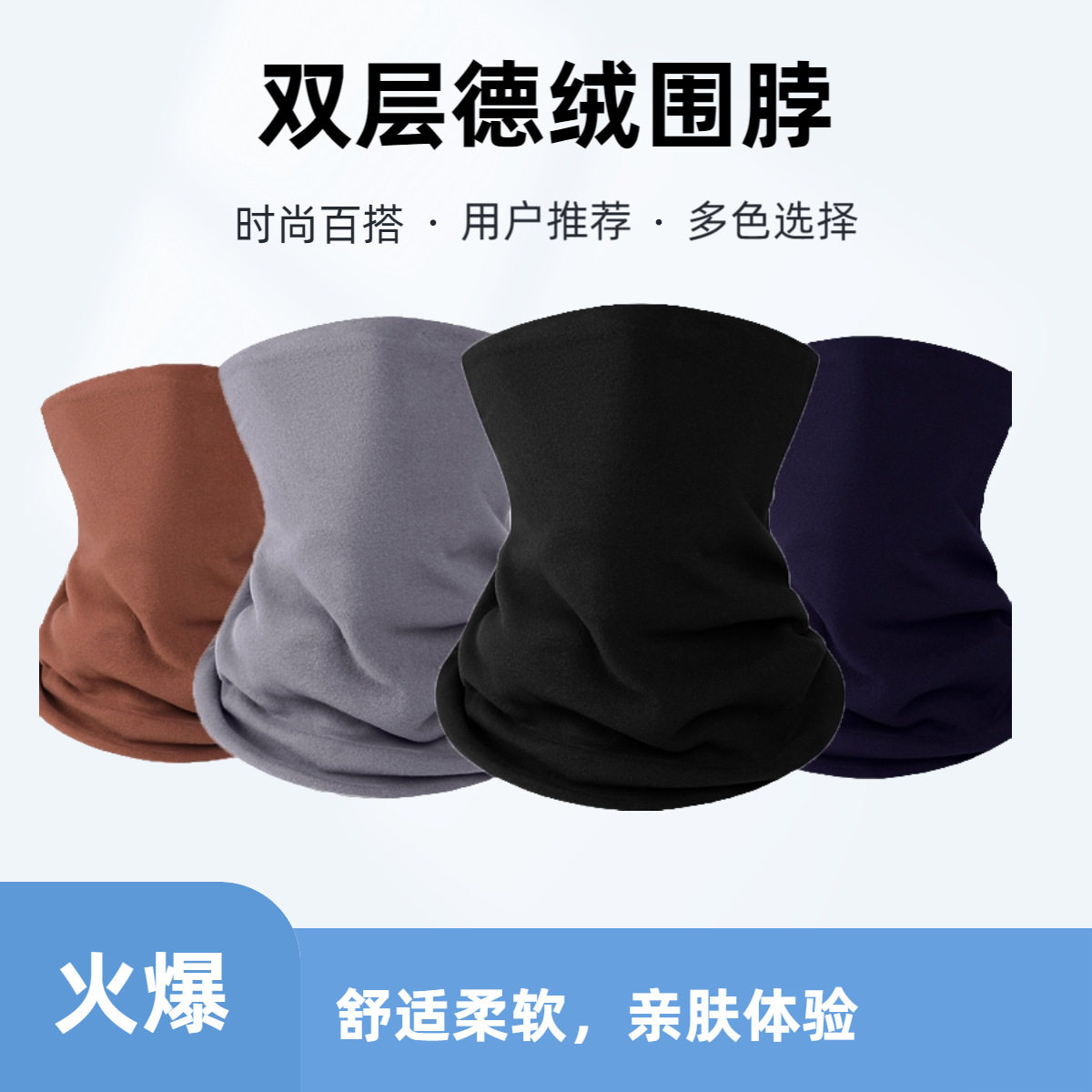 发热德绒加绒加厚脖子套保暖防风防寒护脖颈套纯色男女款围脖秋冬