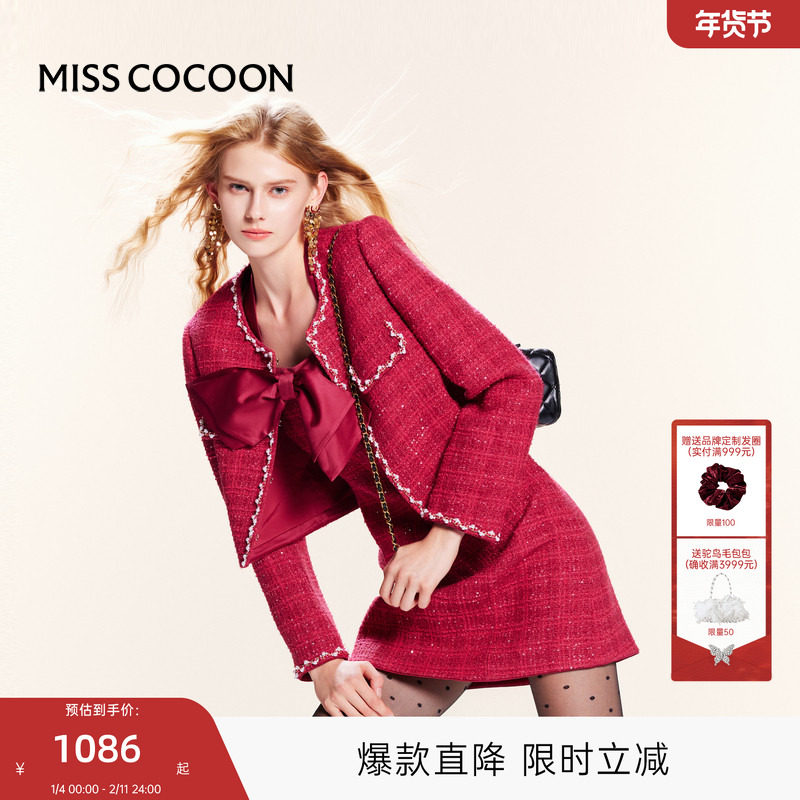 可可尼cocoon红色小香风套装礼服2025秋季新款连衣裙新年战袍穿搭