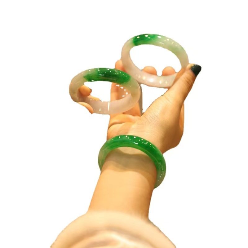 冰种水沫玉石英岩飘花玉手镯翡翠色高冰浅绿玉石手镯精致玉镯子