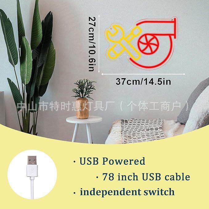 霓虹灯,扳手涡轮霓虹灯用于墙壁装饰,LED 涡轮灯墙艺术汽车车库