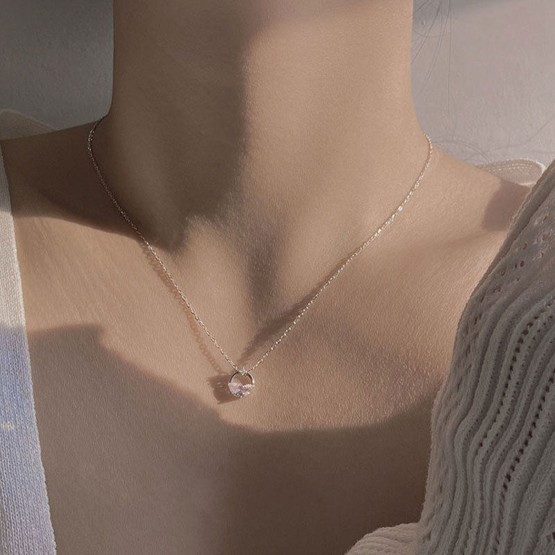 配饰925纯银一汪清泉项链夏季女高级感饰品小众个性冷淡风锁骨链