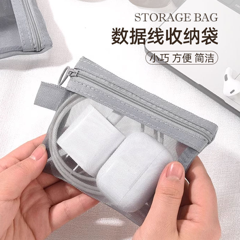 迷你网纱收纳袋便携化妆包旅行口红化妆品盒化妆袋数据线随身收纳