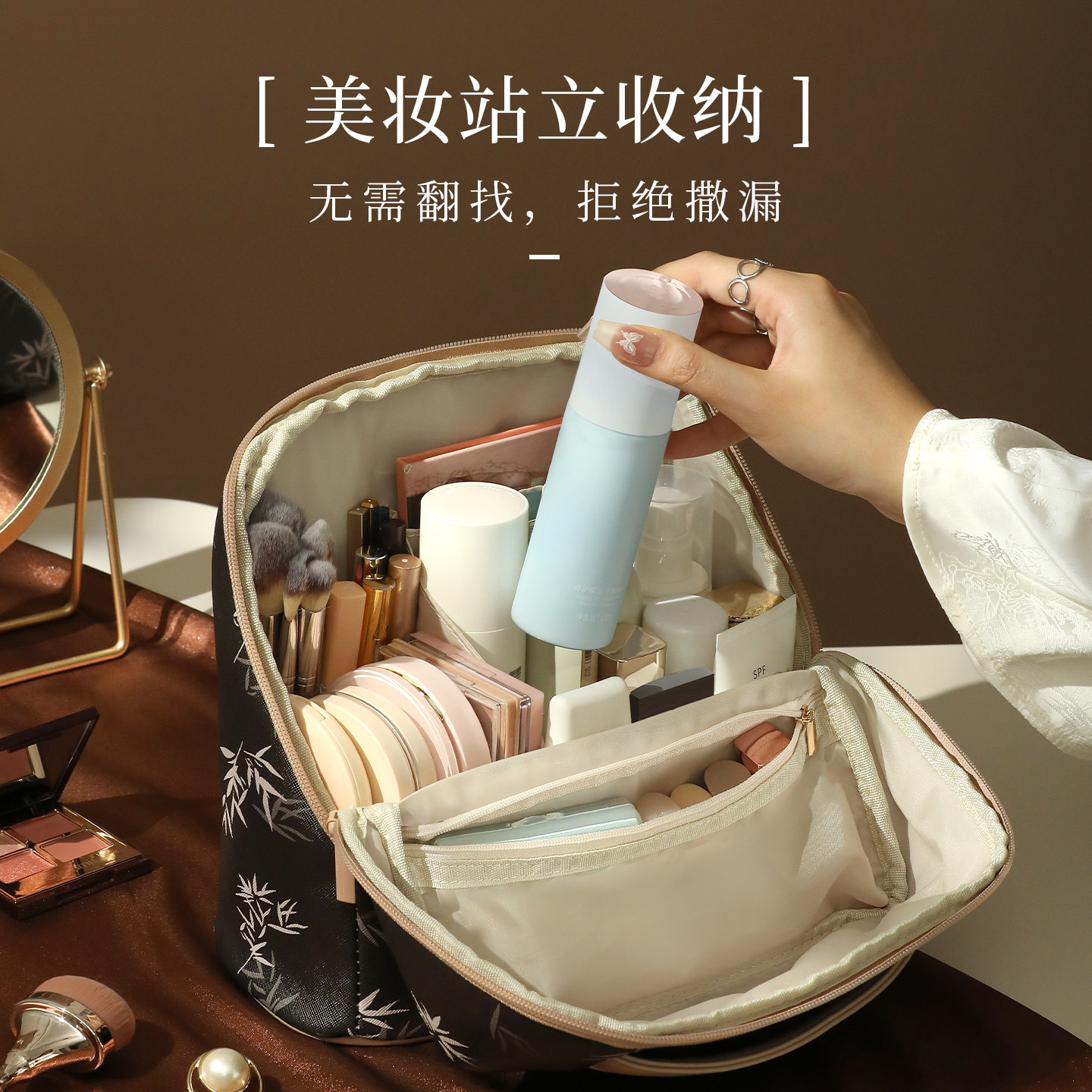可立式化妆包便携式大容量女2025新款高端外出护肤品站立式收纳袋