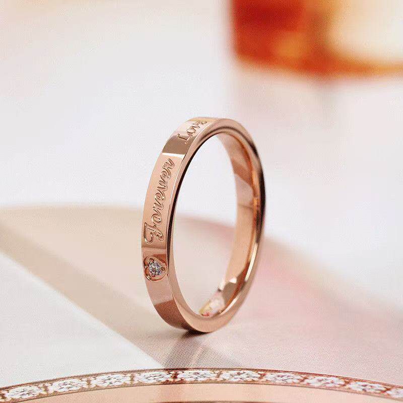 素圈戒指女指环钛钢14k镀玫瑰金关节戒尾戒ins潮闺蜜情侣搭配戒指