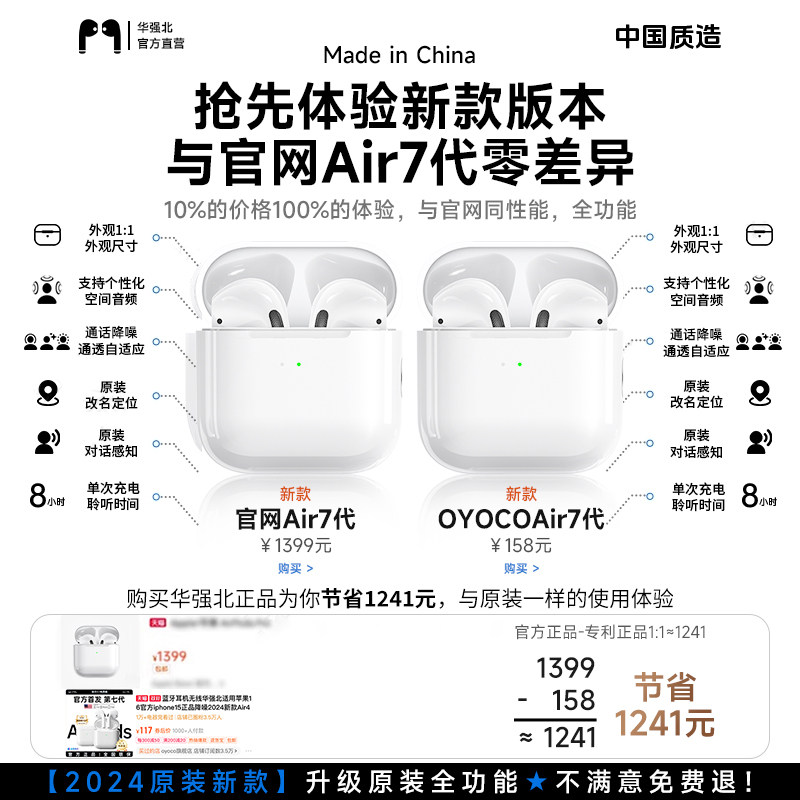 蓝牙耳机政府补贴半入耳式正品华强北降噪Air7高音质无线2025新款