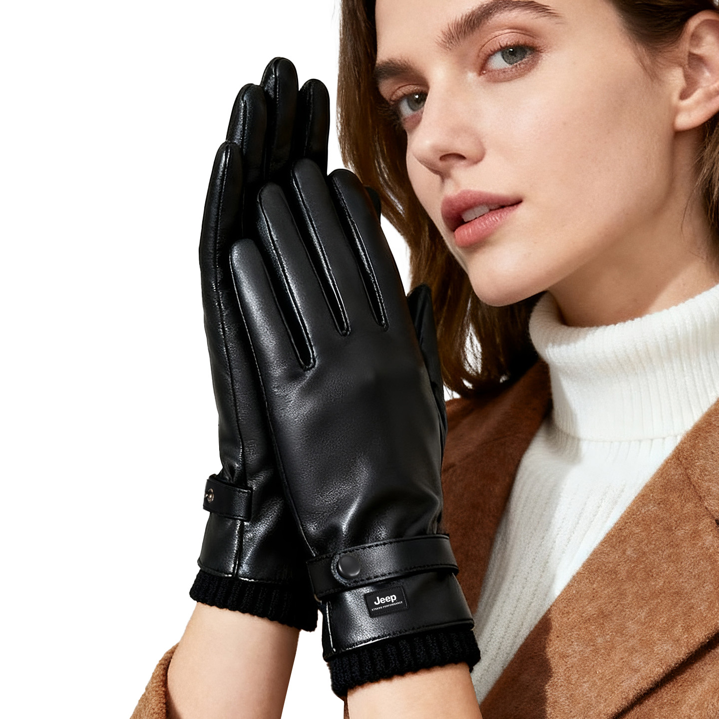jeep吉普皮手套女士冬季骑行电动车加绒加厚防风触屏保暖手套女冬