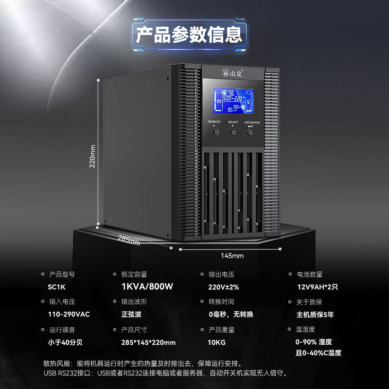 山克ups220v不间断电源在线式SC1K/800W服务器机房防停电备用电源