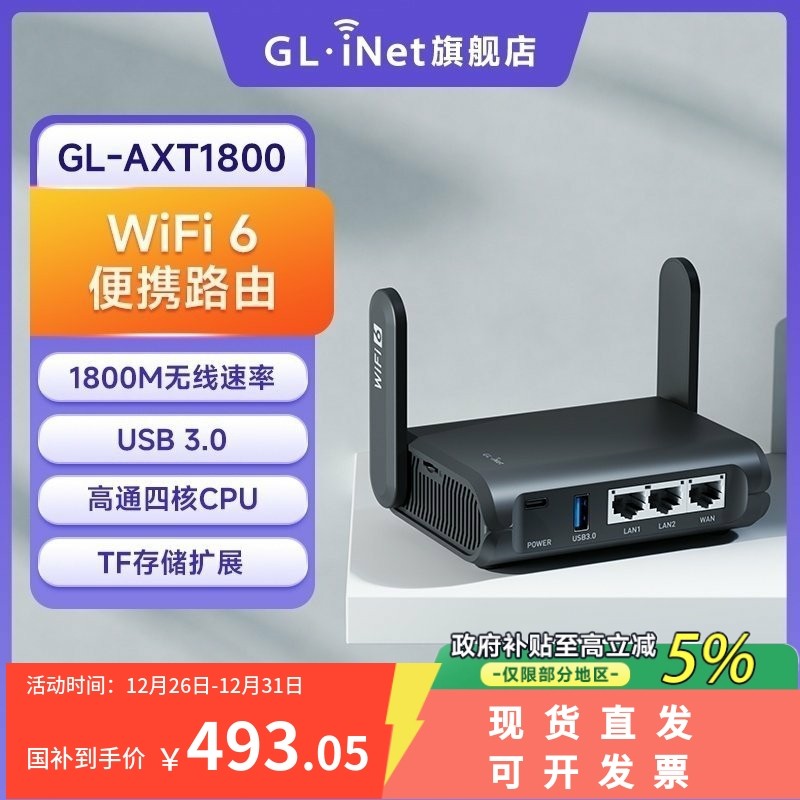 glinet AXT1800千兆路由器wifi6便携式迷你家用双频无线带USB小型NAS网络存储支持奇游联机宝