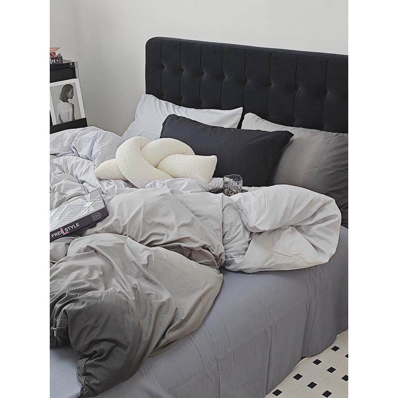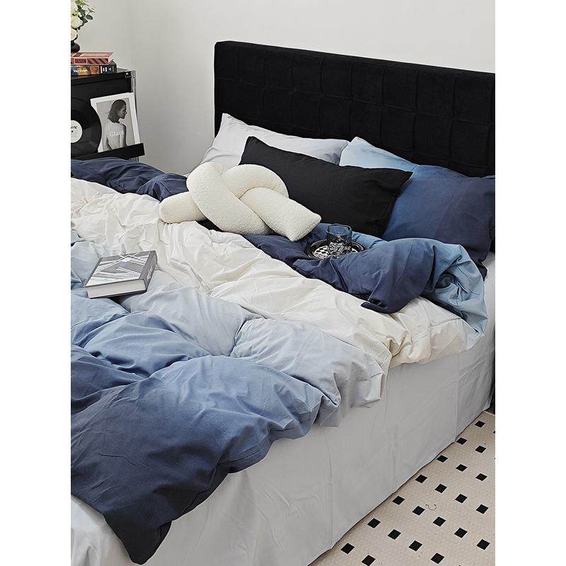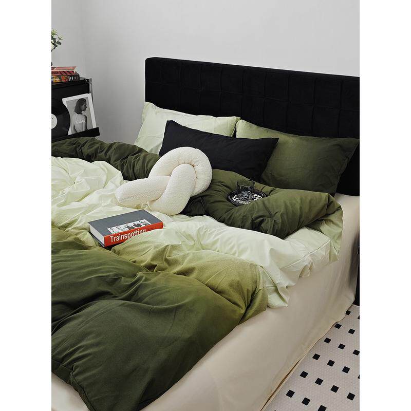 a524ins床笠渐变纯色简约床上四件套水洗棉被套墨绿床单学生三件