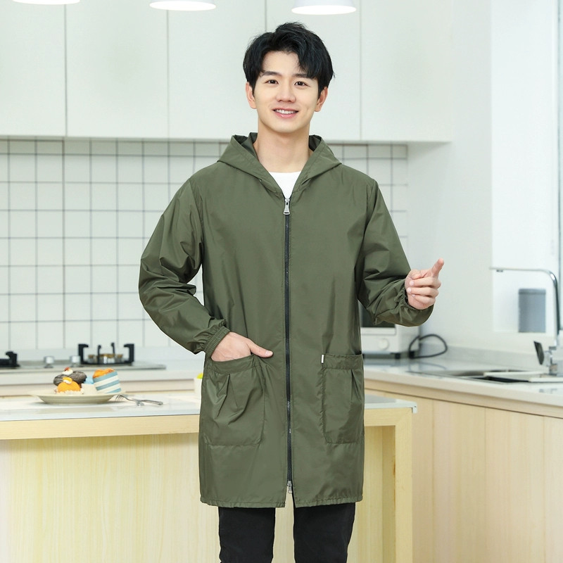 罩衣男工作服长袖防水防油男款大人秋冬护衣纯色大褂家用厨房围裙
