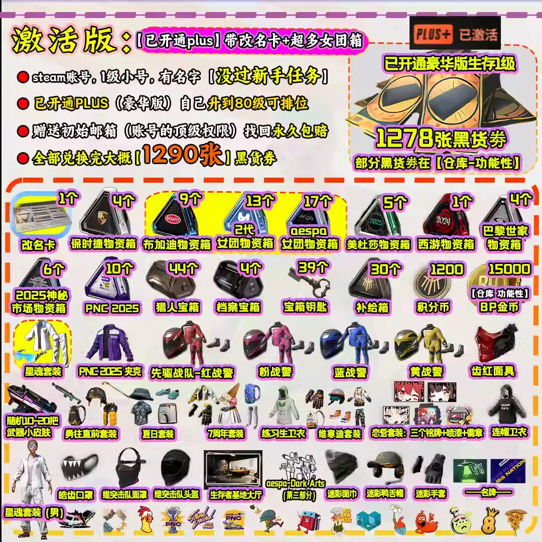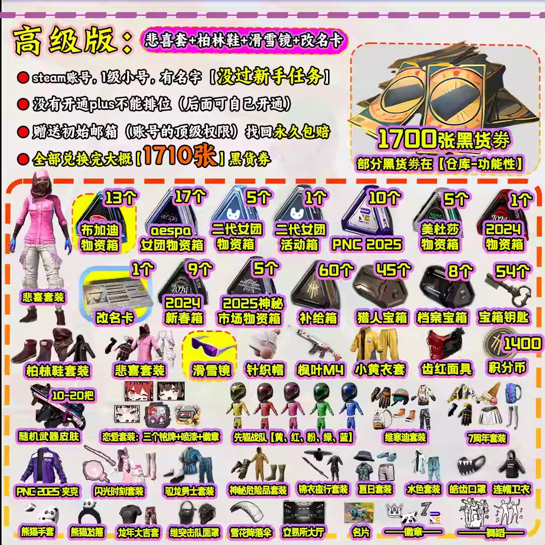 绝地求生成品号pubg帐号黑货票券小号竞技皮肤排位号吃鸡票卷账户